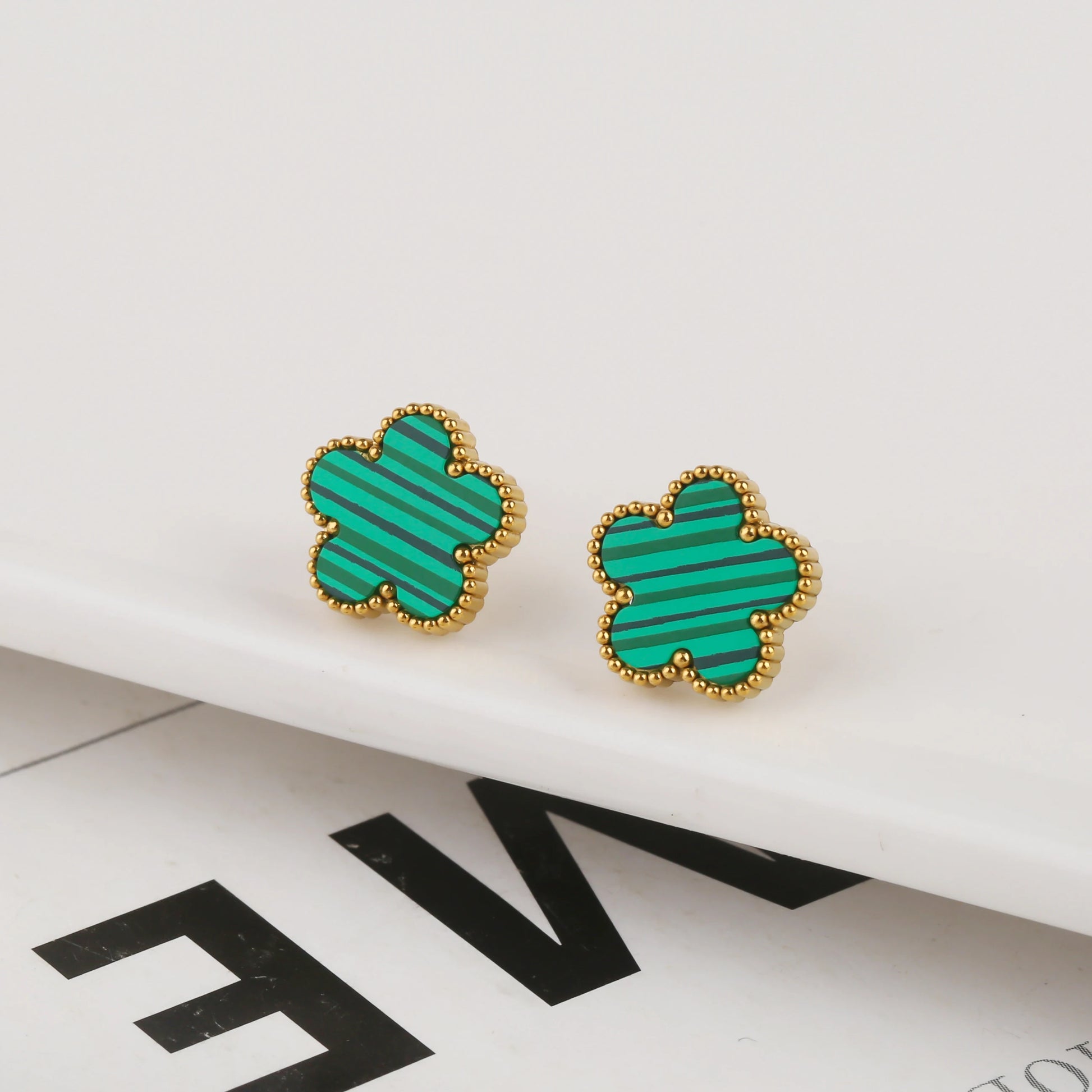 Chic, feminine, and effortlessly timeless, the Clover Stud Earrings bring a touch of elegance to any outfit. Each earring features a glossy clover-shaped charm framed with delicate beaded detailing in a radiant gold finish—designed to catch the light and elevate your everyday style.